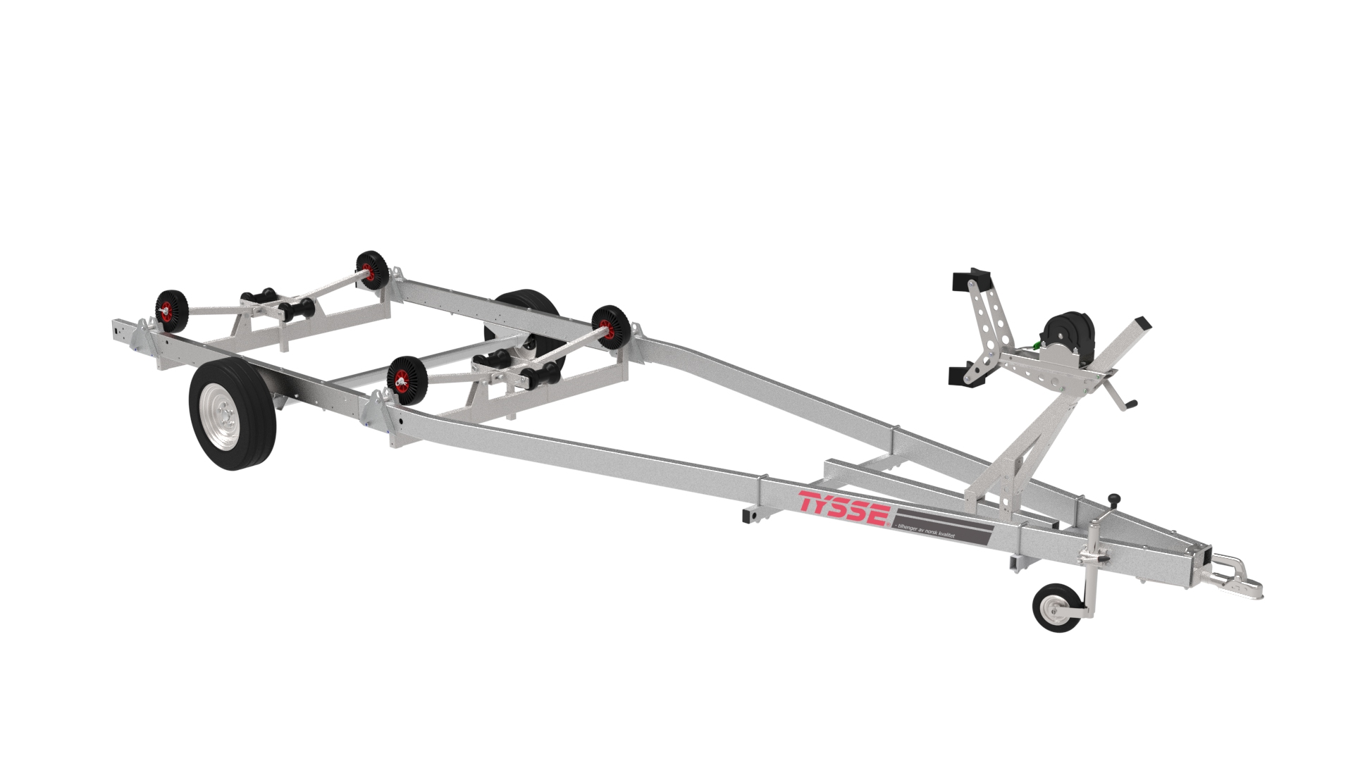 Tysse 6651M03 gir trygg og effektiv håndtering av båten ved opptrekk og opplag. Den kan trilles rett i sjøen takket være plastnav som tåler saltvann. Fleksibel baugstøtte og justerbare aksler gjør det enkelt å finne riktig tyngdepunkt. Hengeren har to vugger med selvjusterende sidestøtter og robuste kjølruller for sikker sentrering. Passer båter opptil 23 fot – med 7 års garanti.