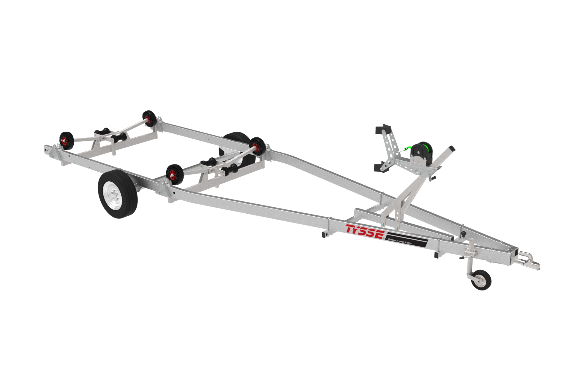 Tysse 6661K03 gir stabil og enkel håndtering ved opptrekk av båten. Hjul med plastnav tåler sjøvann og gjør at vognen kan kjøres helt ned i sjøen. Justerbar baugstøtte og fleksible aksler gir god balanse og riktig plassering av båten. Selvjusterende sidestøtter og solide kjølruller gjør opphalingen trygg og presis. For båter opptil 23 fot – med 7 års garanti.